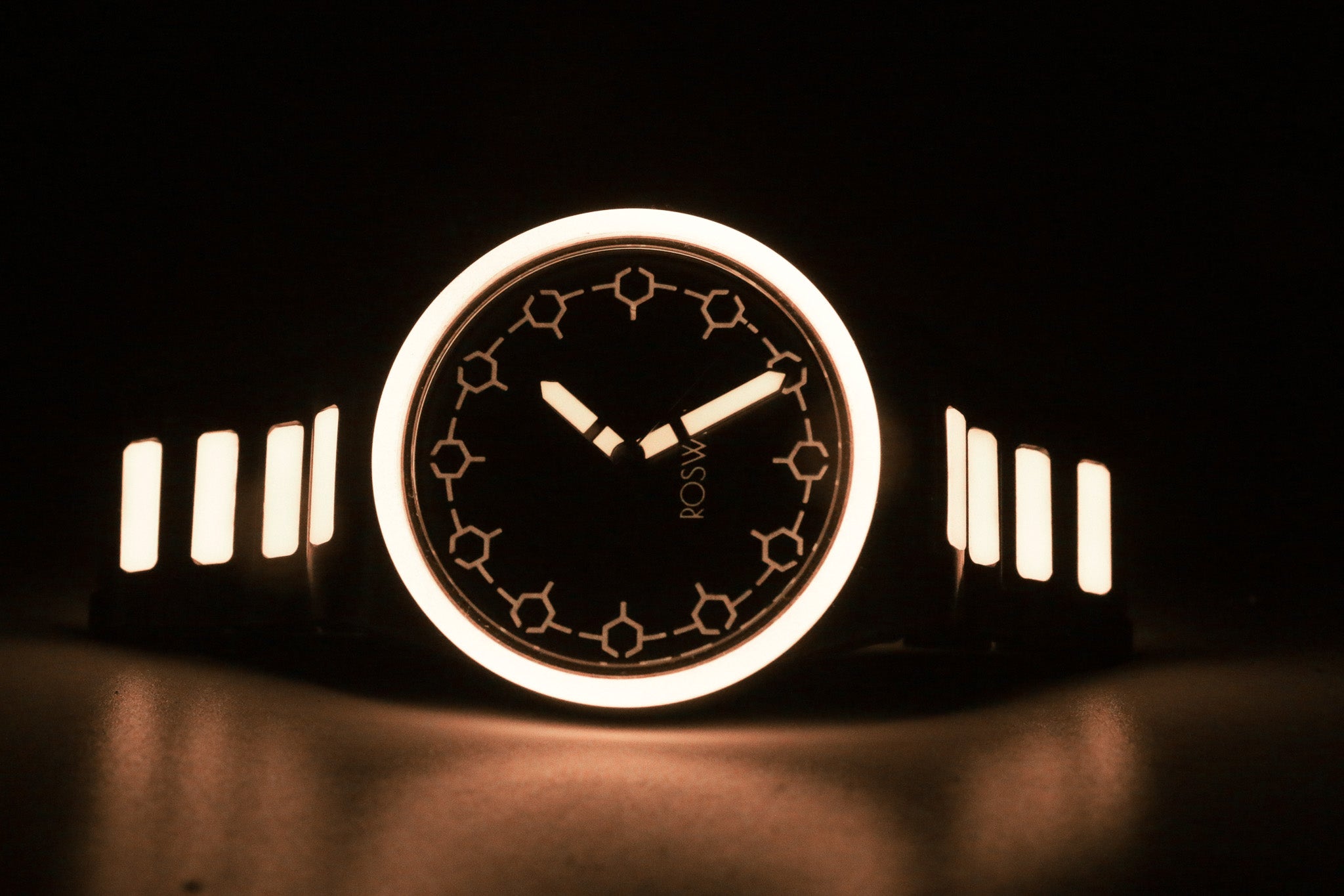 The Roswell Watch is coming soon — a partially handmade, customizable timepiece that dares to glow beyond the ordinary. Crafted with USA-made lume, it radiates for up to 10 hours in green or 7 hours in aqua blue, pairing luminous style with precision power. Choose from Quartz or Automatic movements, each designed to match your rhythm. More than a watch, Roswell is a statement — a fusion of craftsmanship, light, and individuality.